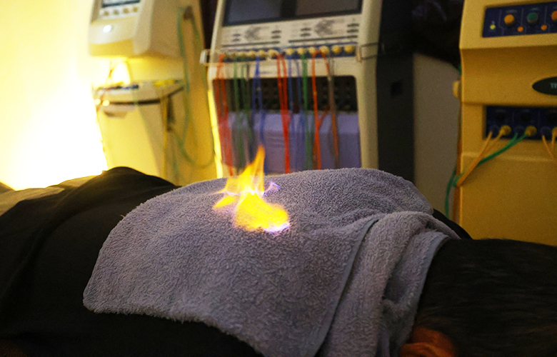 火療は中国の伝統的民間療法で、「気熱通」とも呼ばれ、経絡や気血の考え方をもとに発展してきました。温かい蒸しタオルで身体を覆い、その上から経絡に沿って医療用アルコールを用い安全に燃焼させることで、巡りを促し、冷えや疲労、腰痛、不眠などの不調や自律神経の安定化が期待されます。 見た目に不安を感じる方もいますが、当院では安全管理を徹底し、安心して受けていただける施術を心がけています。